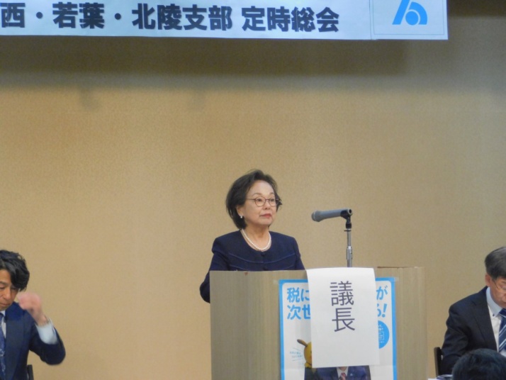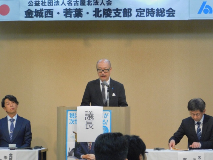 総会議長である大曽根支部の稲垣支部長の進行により、令和7年度事業
